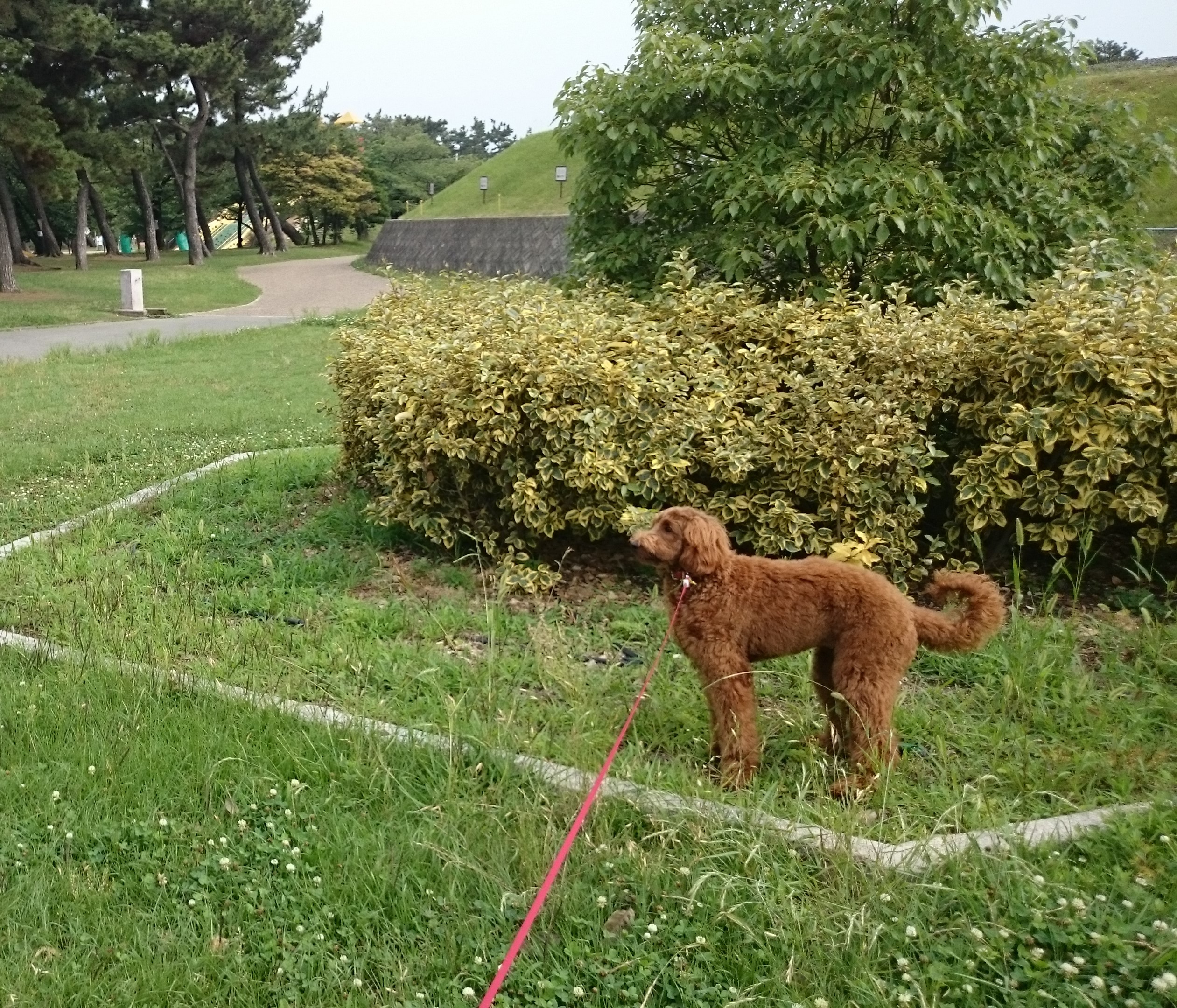 この日は涼しかったですが、それでもハァハァいっていました。散歩中もこまめに水分をとらせてあげましょう。