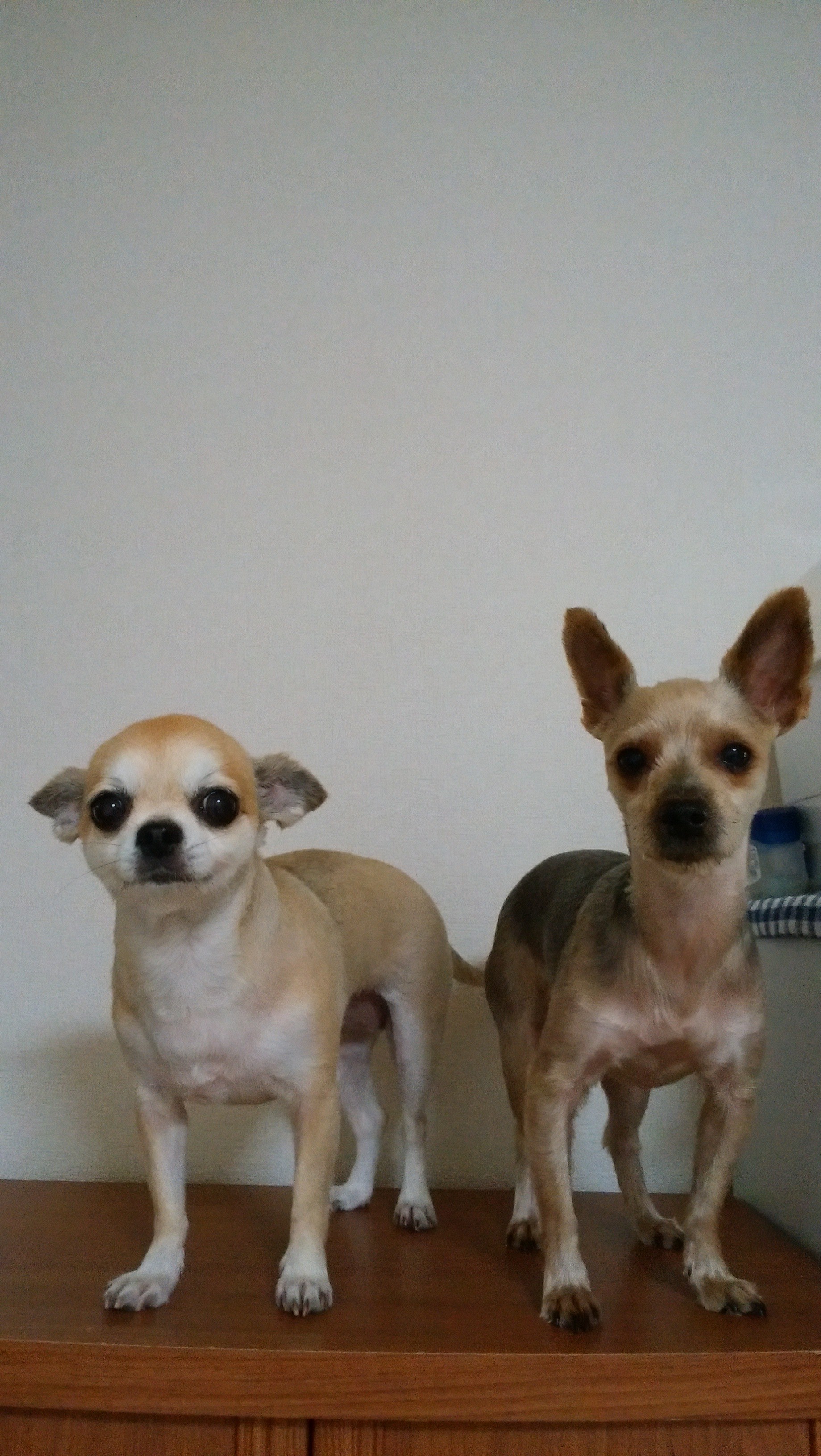 ヨーキーのしずくとチワワのひまりです。