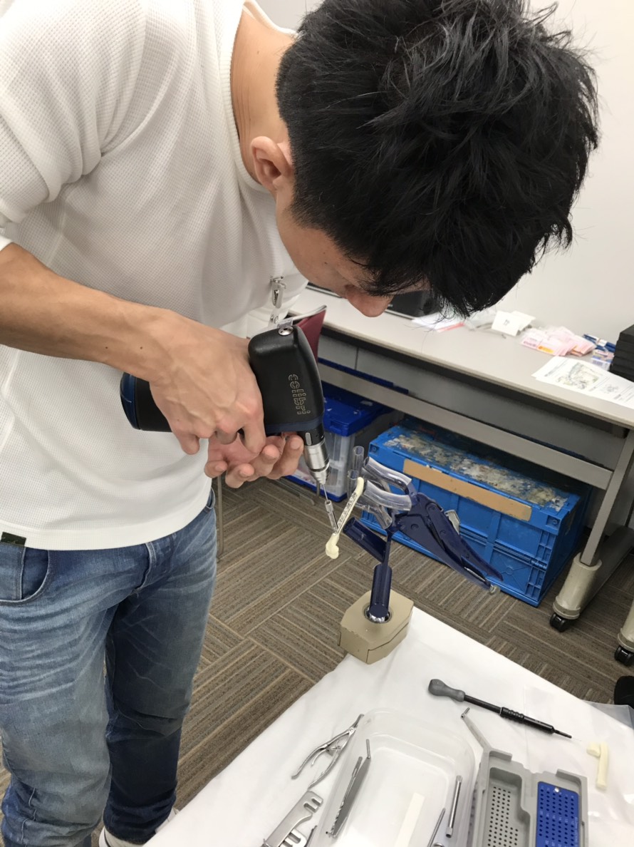 実物とは違うので骨が手から滑ったりして難しかったですが、実際は見ることができない、固定した後の骨の逆側がみれたりするので、出来上がりをしっかりチェックすることができて非常に勉強になりました。