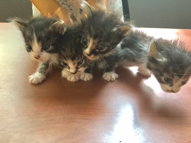 生後1か月ぐらいの子猫ちゃん4きょうだいを当院で保護しています。